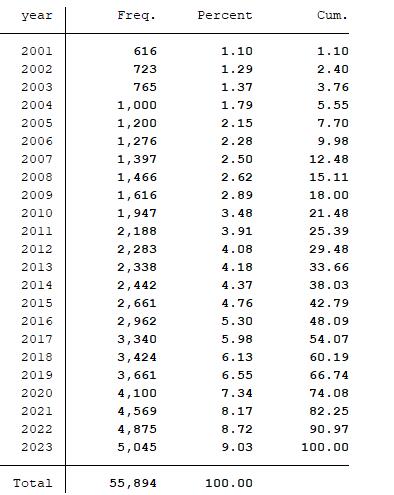 样本选择:全部A股2001-2023年数据