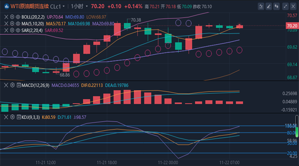 [原油消息面分析]:周四(11月21日)欧盘时段,受俄乌冲突升级引发的地缘政治风险加剧的推动,周四原油期货交易走高。尽管美国原油和汽油库存意外增加带来了看跌压力,但油价仍保持稳定。