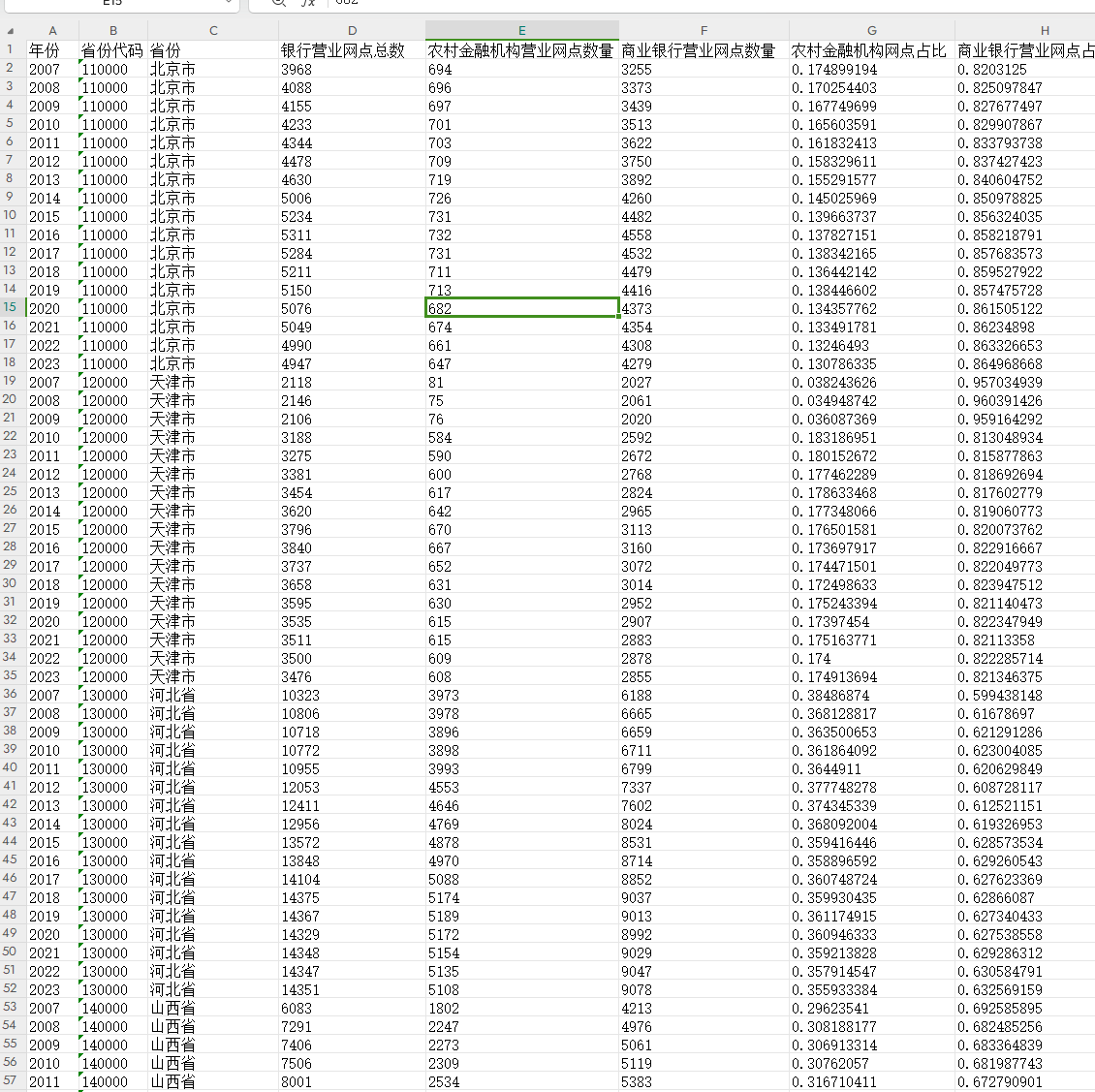 31个省市银行营业网点结构数据完整,每年各省无缺失,共527条数据