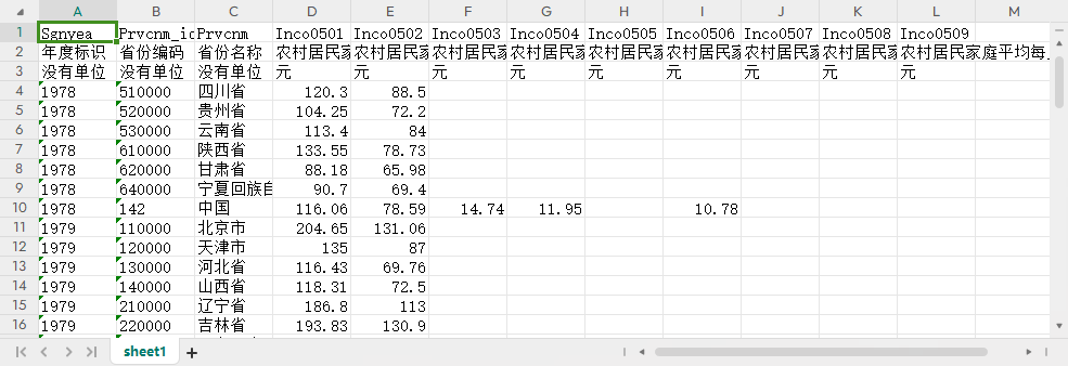 区域经济全国分省份农村居民家庭平均每人生活消费支出1978-2023农村居民家庭平均每人全年生活消费支出