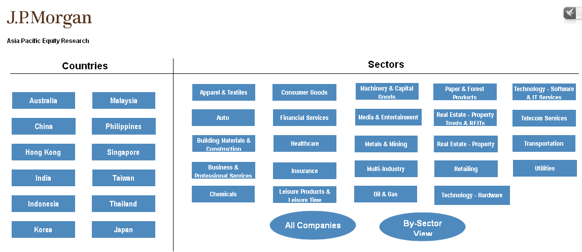 This material is provided for information only and is not intended as a recommendation or an offer or solicitation for the purchase or sale of any security or financial instrument. This material is not a research report, although it may refer to information and data contained in J.P. Morgan published research reports or models from all J.P. Morgan affiliated regions. Opinions and estimates constitute our judgment as of the date of this material and are subject to change without notice. Past performance is not indicative of future results. Securities, financial instruments or strategies mentioned herein may not be suitable for all investors. The opinions and recommendations herein do not take into account individual client circumstances, objectives, or needs and are not intended as recommendations of particular securities, financial instruments or strategies to particular clients. The recipient of this publication must make its own independent decisions regarding any securities or financial instruments mentioned herein. Please refer to the most recent published research or model for complete information on the specific stocks mentioned in this publication, including important disclosures and analysts' certifications. © 2011 JPMorgan Chase & Co.