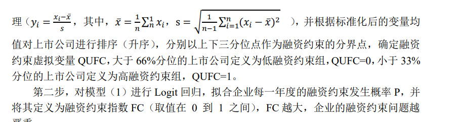 包括四种衡量方法,分别为WW指数,FC指数,KZ指数,SA指数