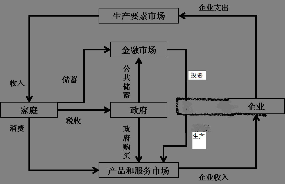 具体到曼昆这个图,企业支出=企业收入+投资,由于西经不分投资和消费,把投资的钱也看成了企业收入,就以为企业收支平衡了,就以为整个图到处都是平衡的,就以为这样下去经济就稳定发展了,岂不知这个图大大地不平衡,企业虽然不断扩大产能,但是这些产能无法释放,企业整体也从未赚钱,一直在借钱。