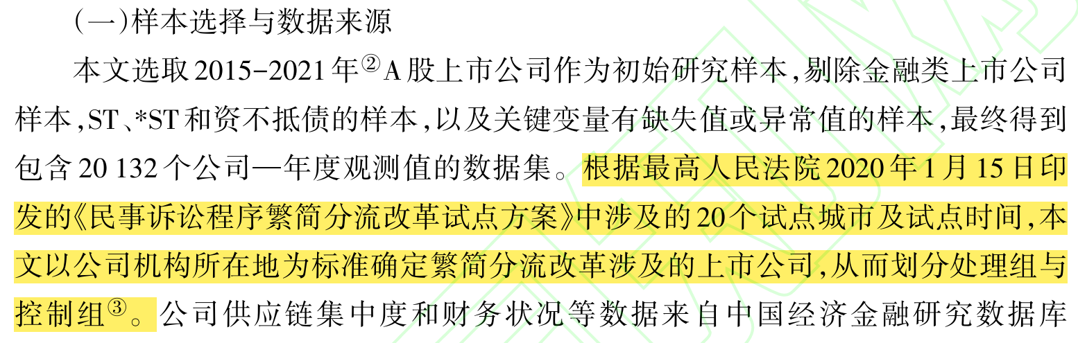 4.参考文献:王钟阳,唐松.司法程序效能提升与供应链配置:“繁简分流”改革的证据[J/OL].世界经济,2024,(09):122-151[2024-11-12].