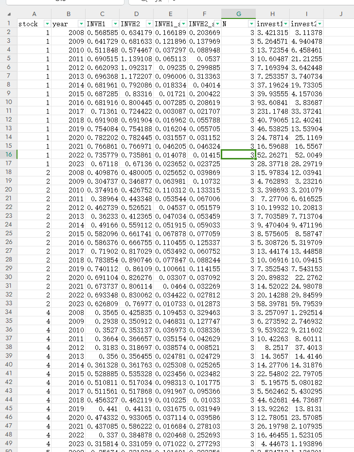1.稳定型股权:公司i在t年的投资者持股比例与其过去3年持股比例标准差的比值。Invest越大,则机构投资者在时间维度上的稳定性就越高。