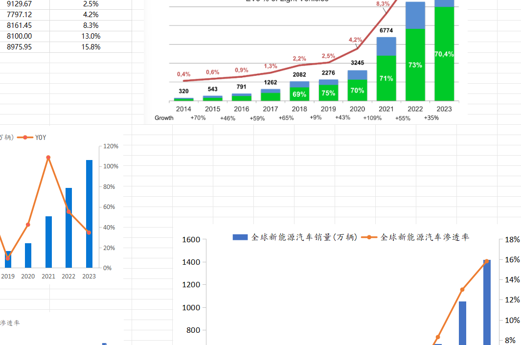 指标:全球新能源汽车销量(万辆)、YOY、乘用车(万辆)、全球新能源汽车渗透率