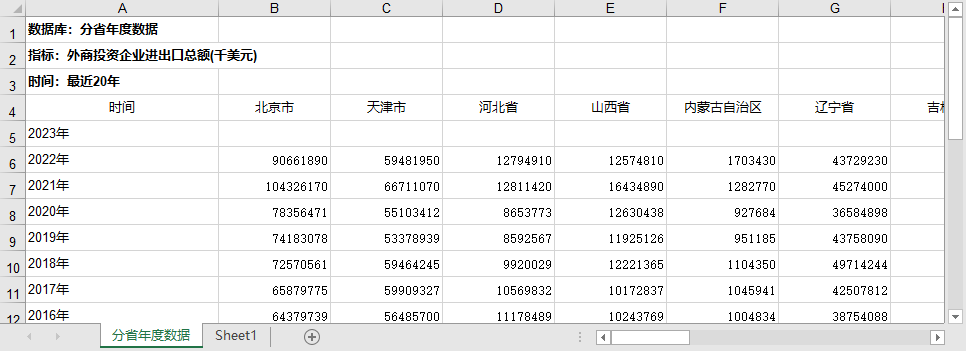 中国31省自治区GDP、进出口总额、出口额、进口额、外商直接投资额(2000-2021年)