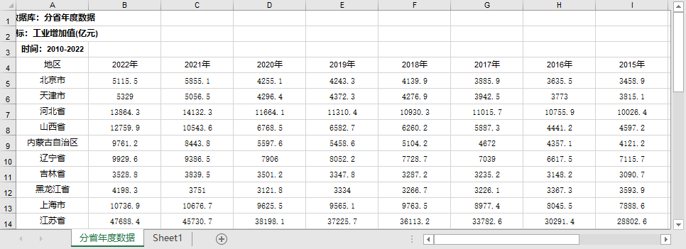 全国31个省份制造业工业企业统计数据2022-2000 规模以上股份合作工业企业主营业务成本亿元 规模以上工业企业工业增加值当年价格亿元