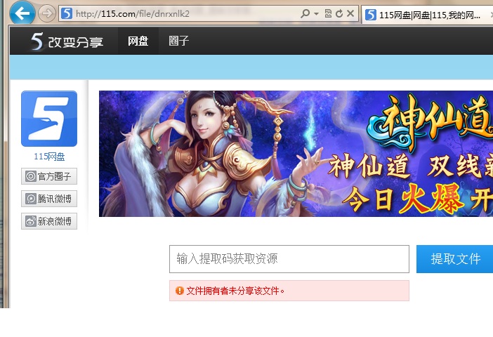 year努力加油 发表于 2012-11-6 00:31 再次打扰一下,您看115网盘的链接地址没错呀(图片中)可是,“文件拥有这未分享该文件”,怎么办?