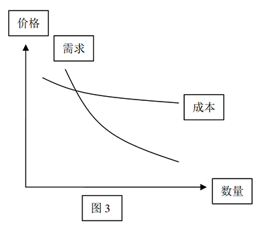 而成本与需求理论却认为,并不是价格越高,供给越多!而是只要价格一旦高于成本(即现价,即成需曲线的相交点),企业就可以供给无数!(相对于人类的需求而言)。因为企业生产越多成本越低,只要在这个价格市场有需求,就会拼命生产!
