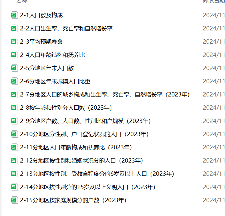 如果您想获取非常具体的数据指标,例如您列举的“按地区分性别的人口(2023年)”等,那么最好直接访问国家统计局数据查询系统或下载最近几年的《中国统计年鉴》进行查阅。此外,考虑到版权问题和数据安全性,在网络上共享完整的Excel格式统计年鉴可能存在限制。