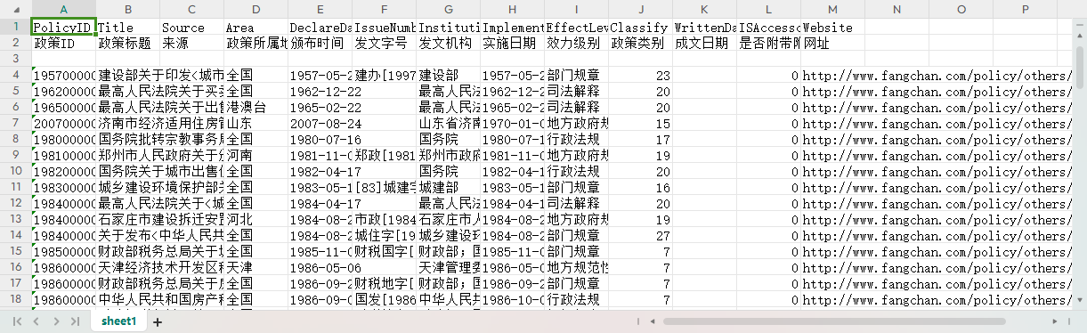 政策ID 政策标题 来源 政策所属地区 颁布时间 发文字号 发文机构 实施日期 效力级别 政策类别 成文日期 是否附带附件 网址