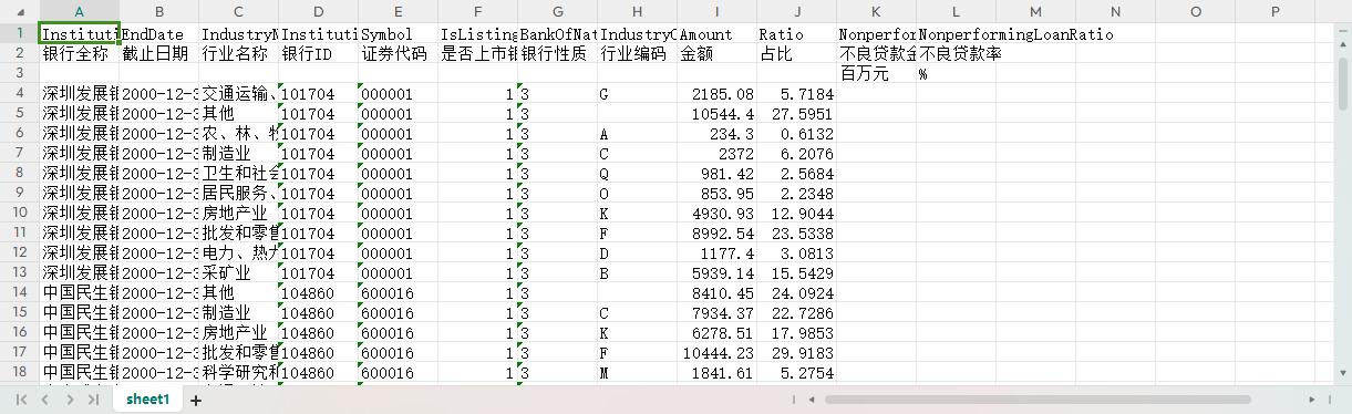 银行全称 截止日期 行业名称 银行ID 证券代码 是否上市银行 银行性质 行业编码 金额 占比 不良贷款金额 不良贷款率