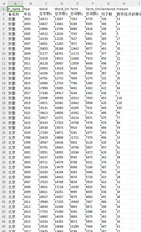FreSum[数字经济政策词频汇总]-词频汇总数