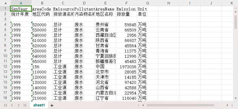 统计年度 地区代码 排放源名称 污染物名称 地区名称 排放量 单位