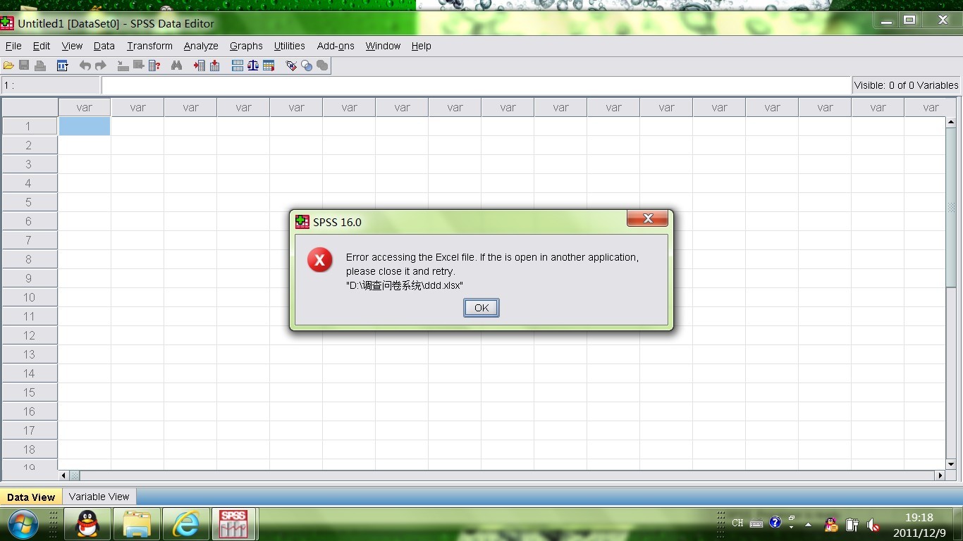 win7下 SPSS16.0导入07的excel出错 在线等!!