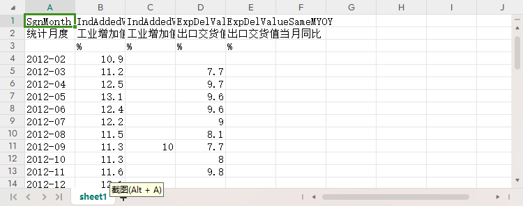 统计月度 工业增加值累计值同比 工业增加值当月同比 出口交货值累计值同比 出口交货值当月同比