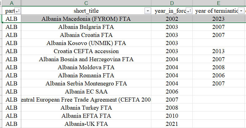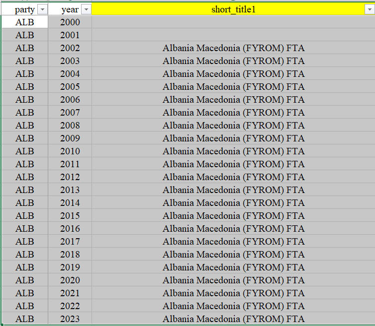 题目可能描述不详细,我的问题具体如下:比如图一的ALB签订了很多协定,每条协议的生效年份不同,我的时间设定在2000-2023,比如第一个协定在2002年-2023年生效,那么如何在stata中把它变为图二那样的从2000-2023年的数据?