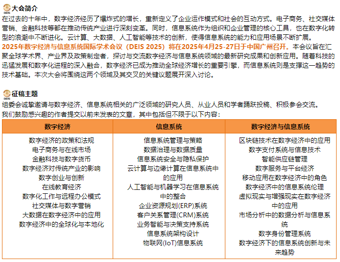 大会官网:[url]www.icdeis.com[/url]【点击参会/投稿/了解会议详情】