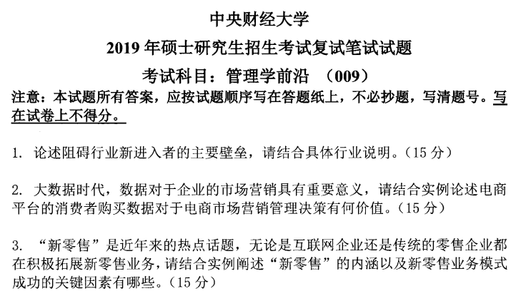 中财中央财经大学考研复试真题管理学前沿2019(无答案)