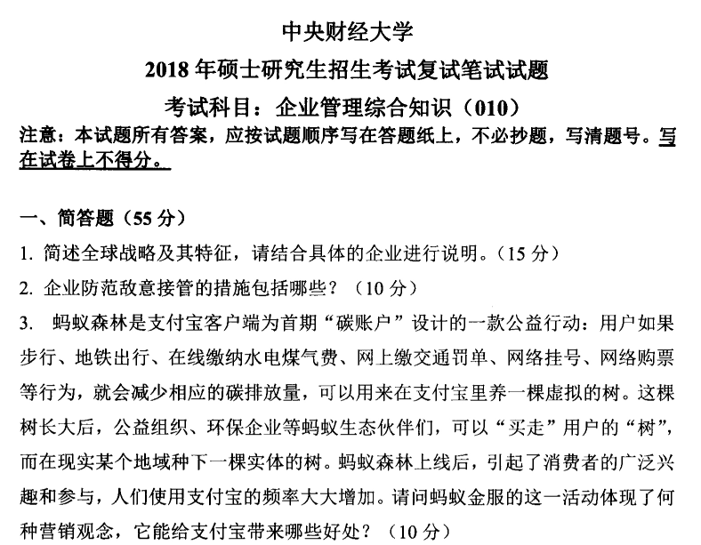 中财中央财经大学考研复试真题企业管理综合知识2004-2018(2004-2011有答案,其中2007,2011为部分答案)