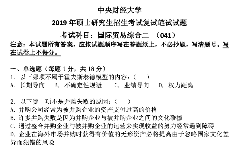 中财中央财经大学国际贸易综合二考研复试真题2010-2019(无答案).pdf