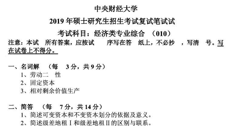 中财中央财经大学经济类专业综合考研复试真题2015——2019(无答案).pdf