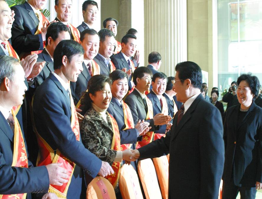 2006年,我作为全国五一劳动奖章获得者,全国十大知识型职工标兵,审计长李金华在北京专门接见我们武钢审计部的代表。同时,王兆国接见我们全国学习型组织和标兵。(这是在网上下载的新华社照片),评选工作历经两年,最后是国家十大部委司局长无记名投票产生,我的排名是第一,所以我照相站在最中间,我作为他们中间的唯一代表,在国家领导人参加的表彰大会上发言,介绍我和我的学习型团队,介绍我们的内部审计。这次表彰会在全国32个省会城市、自治区、直辖市设立了分会场,进行现场直播。