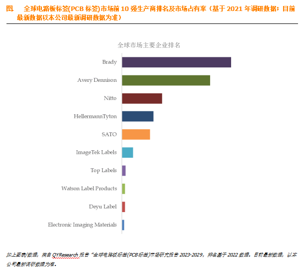 全球范围内电路板标签(PCB标签)生产商主要包括Brady、Avery Dennison、Nitto、HellermannTyton等。这些企业在市场上占据重要地位,具有强大的技术实力和品牌影响力。