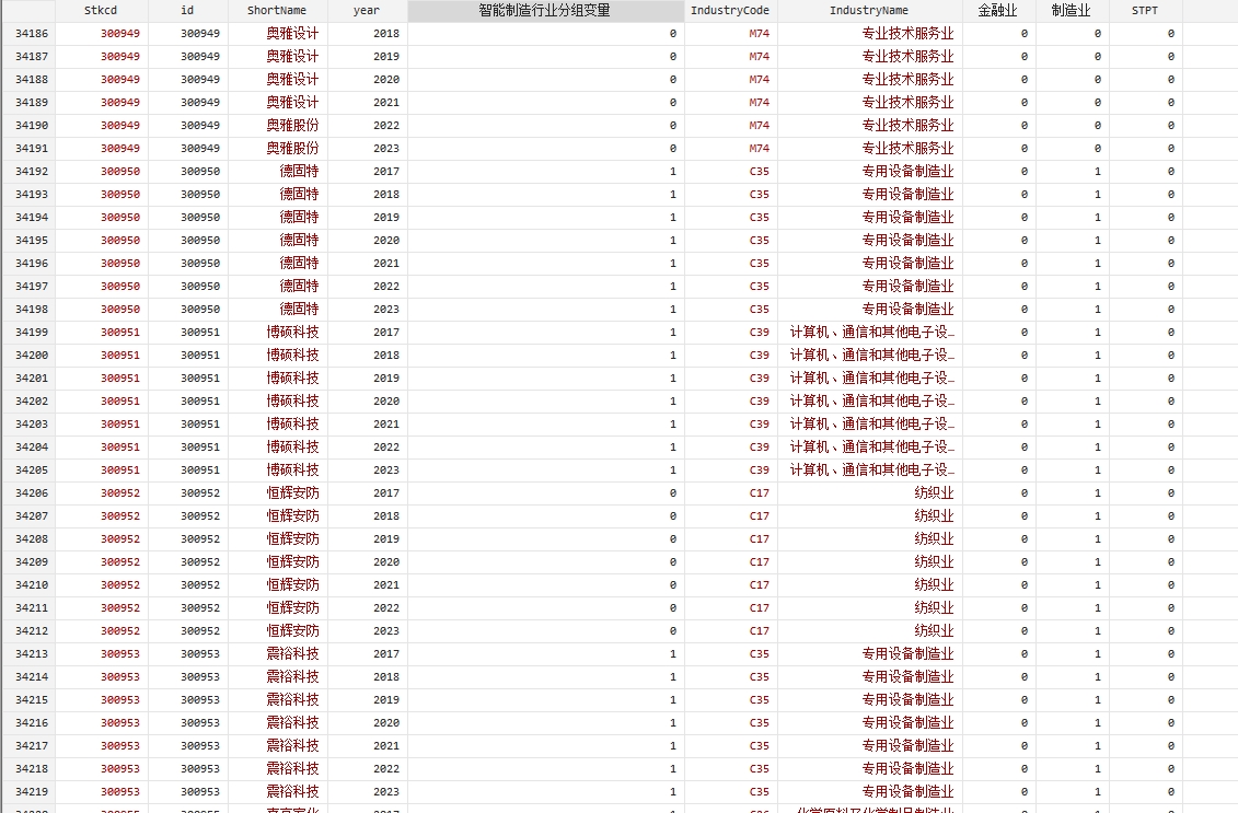 ,将智能制造产业政策所针对的十大重点领域行业与中国证监会行业相匹配,识别出实施智能制造行业。
