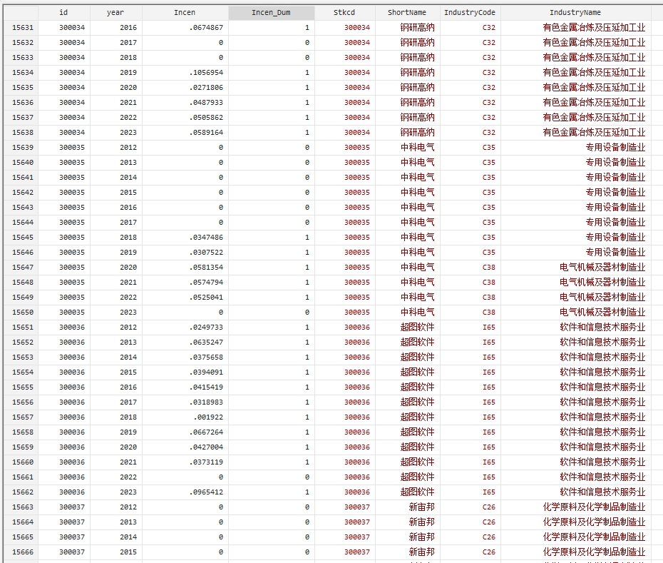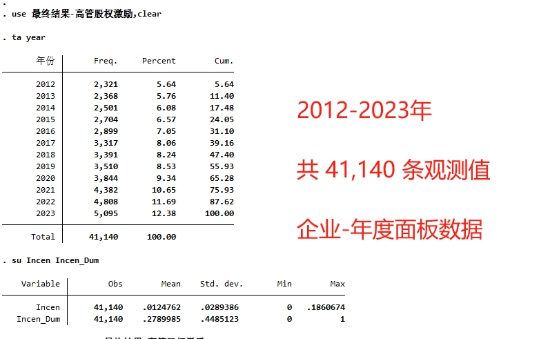范围:2012 - 2023 年,共 41,140 条观测值,全部A股上市公司