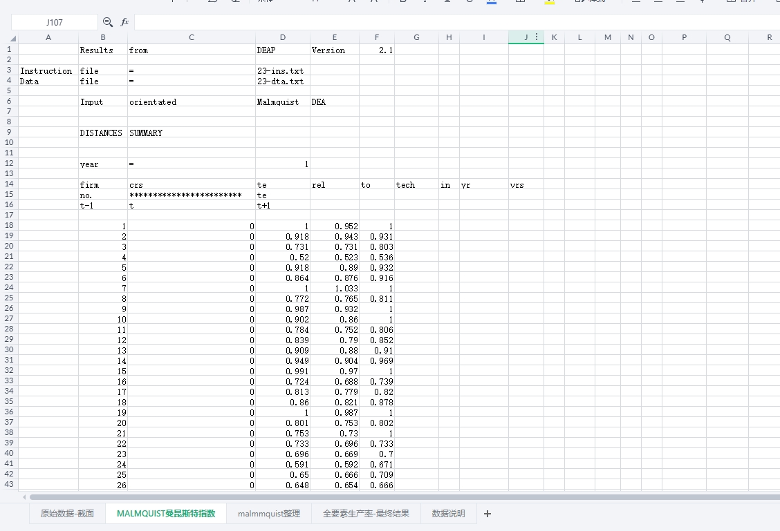 使用模型:DEA-Malmquist