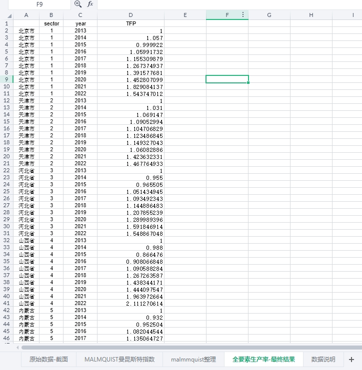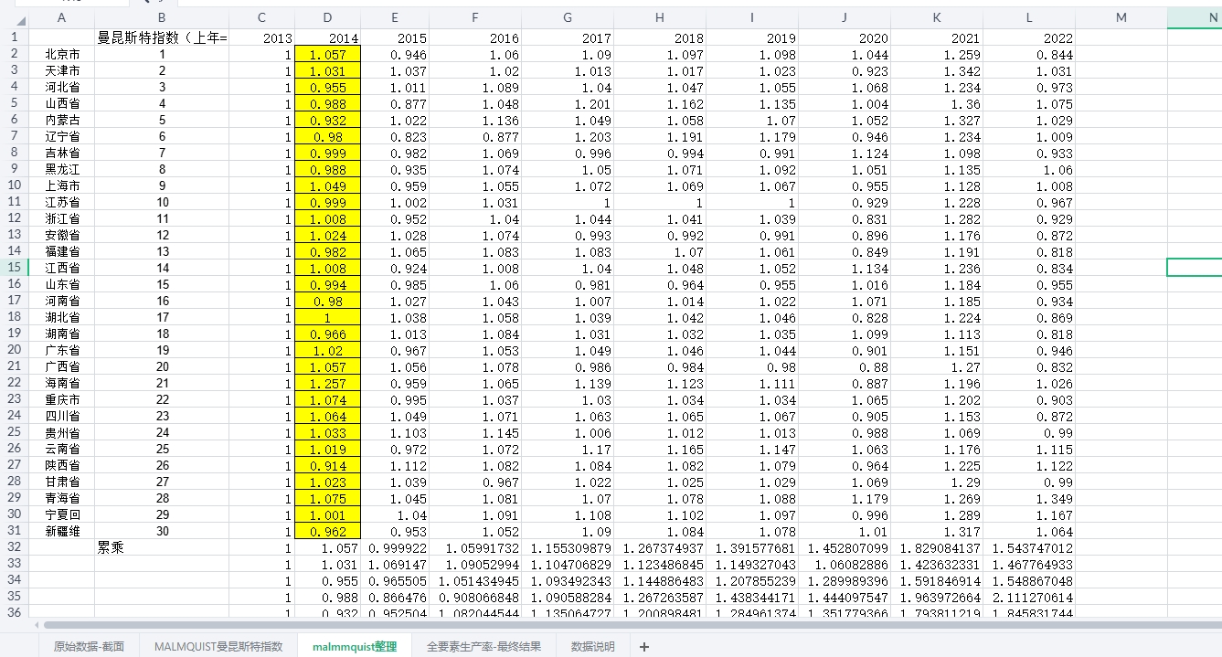 一、测算说明:参考C刊《软科学》刘淑茹(2024)研究的做法,使用DEA-Malmquist模型进行测算,具体做法如下图所示,包括原始数据和最终计算结果,大家可以验证真伪!