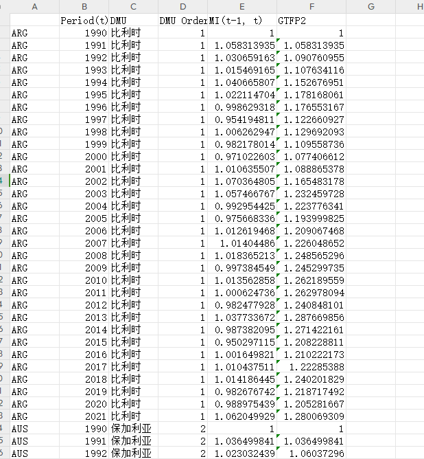 1.资料名称:2021-1990年全球国际世界绿色全要素生产率数据