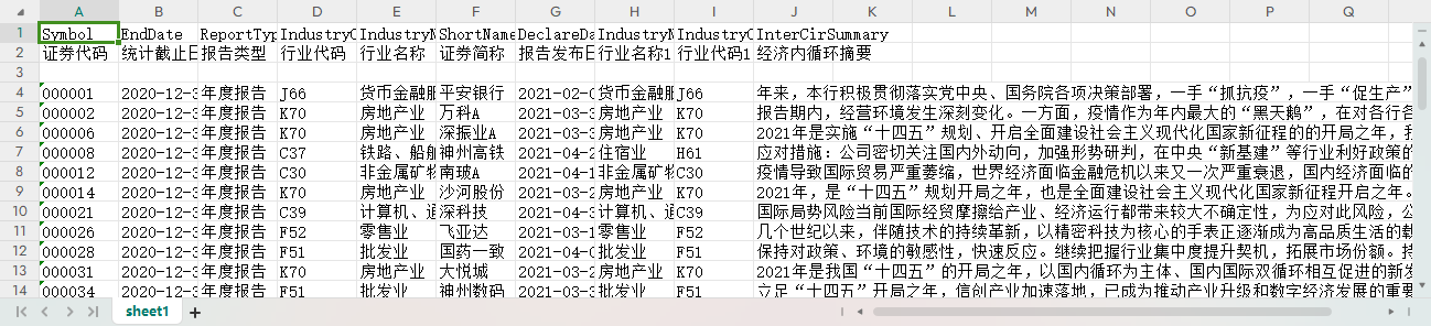 IndustryCode1 [行业代码1] - 中国上市公司协会行业分类代码。