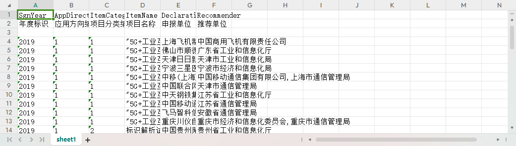 年度标识 应用方向编码 项目分类编码 项目名称 申报单位 推荐单位