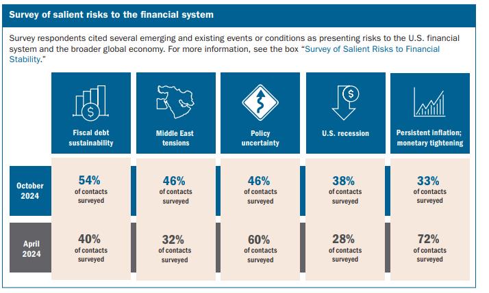 在美联储最新公布的金融稳定报告中,美国政府债务被受访者列为最突出的金融风险。