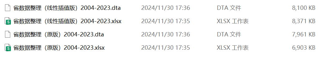 文件格式:Dta格式(使用Stata打开)、Xlsx格式(使用Excel打开)