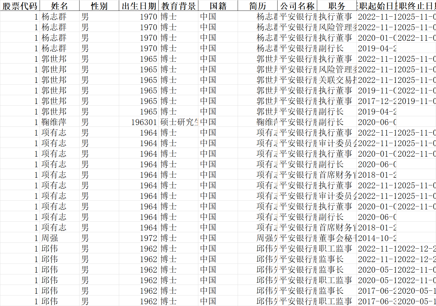 教育背景 | 任职终止日期 |