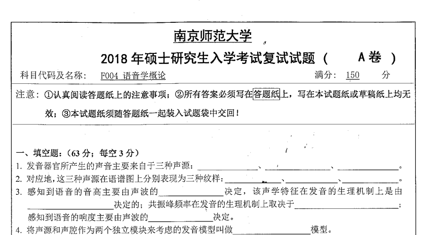 南师大南京师范大学考研复试真题语音学概论2018(无答案).pdf