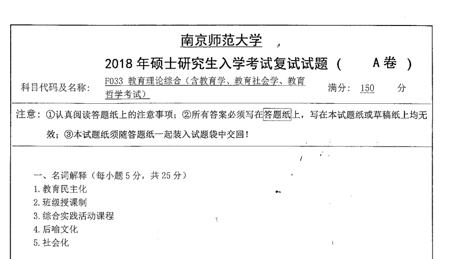 教育理论综合2018南师大南京师范大学考研复试真题(无答案)