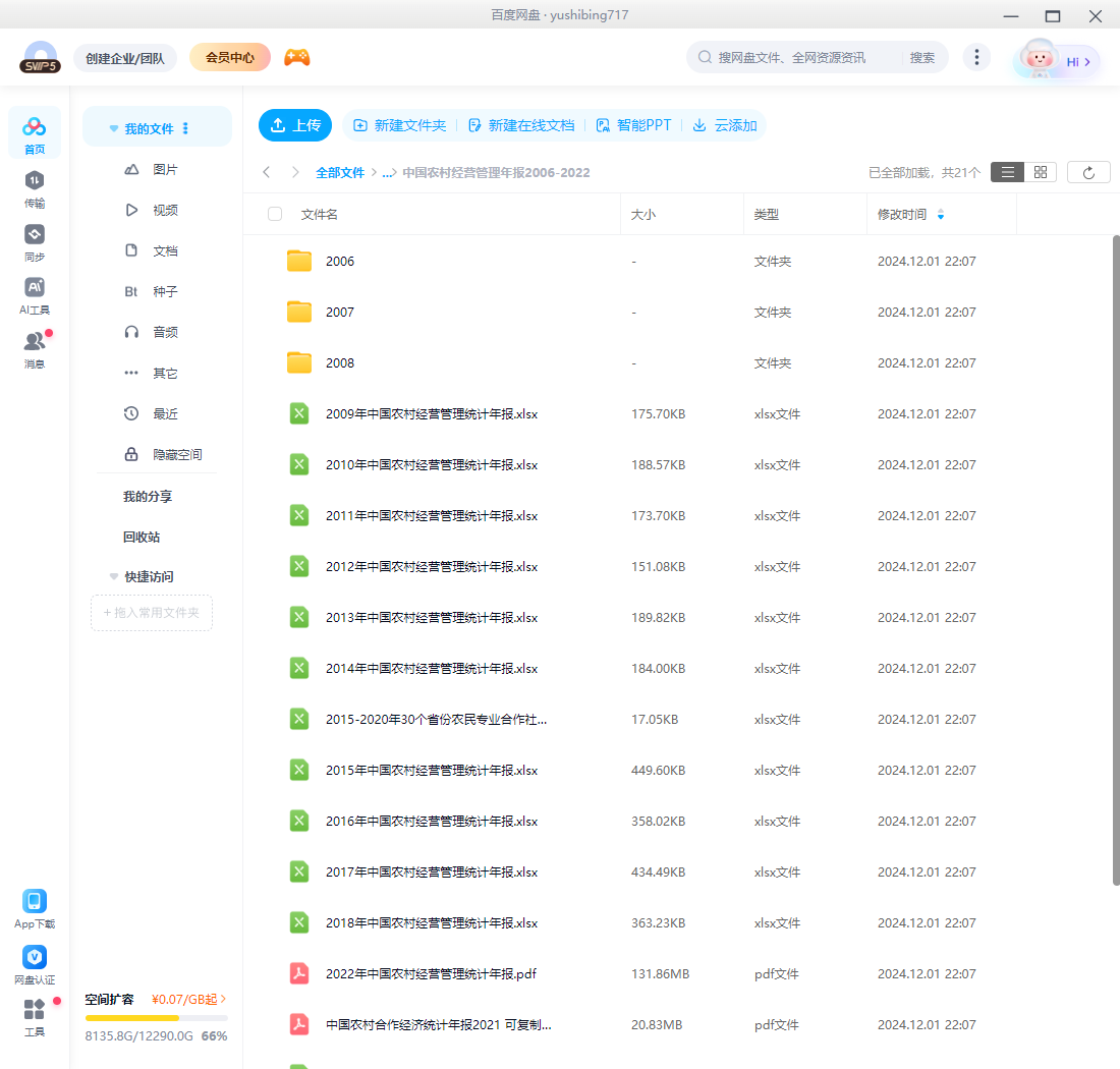 中国农村政策与改革统计年报、中国农村经营管理统计年报年报的网盘链接,300多MB数据)