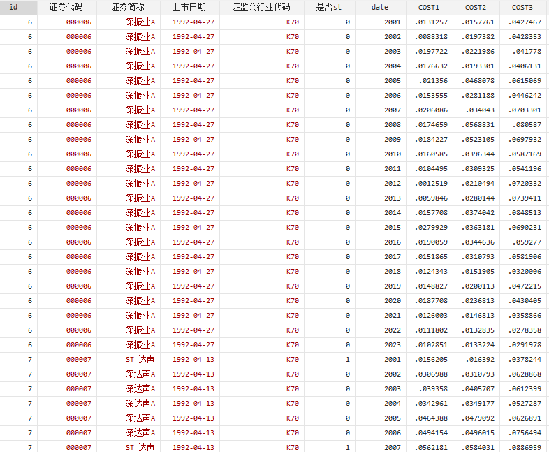 <span]A股上市公司债务融资成本COST指标数据2001-2023年
