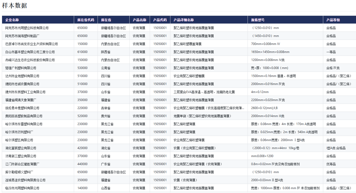 CnOpenData平台将国家监管总局公布的全国32个省市、2个特别行政区的产品质量监督抽查数据加以汇总,为研究我国产品质量动态现状、人民生活水平提供了基础和支撑。