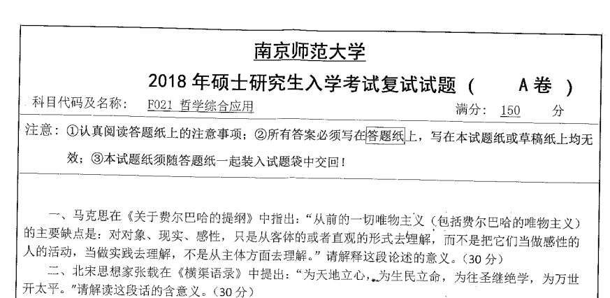 2018哲学综合应用南师大南京师范大学考研复试真题(无答案).pdf