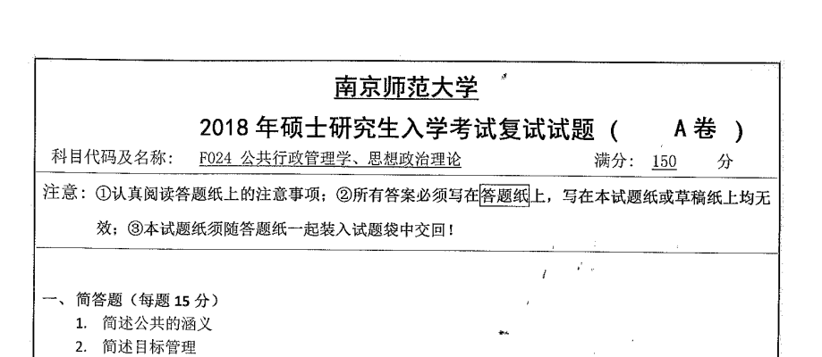 2018公共行政管理学,思想政治理论南师大南京师范大学考研复试真题(无答案).pdf
