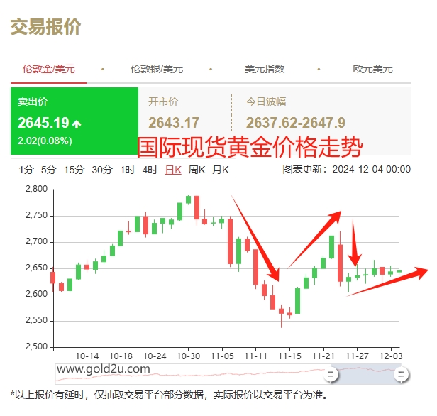 今日周三(12月4日):国际黄金开盘先行窄幅波动,走势虽震荡上移,布林带中轨也转为支撑,但上方也受阻于60日均线强劲压力,短期走势仍将维持震荡,且有偏弱走低再度下探100日均线支撑的预期;
