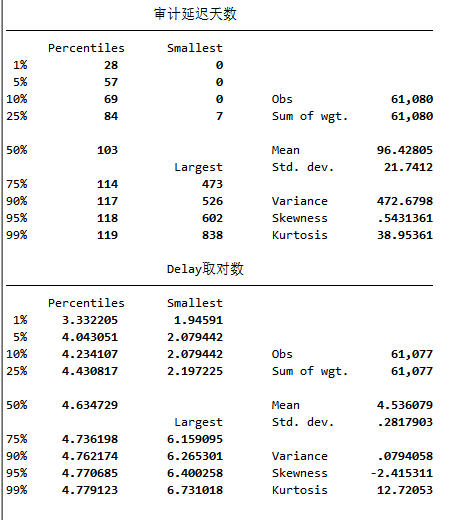 Delay:审计延迟天数,从财政年度末到审计报告签署日期。