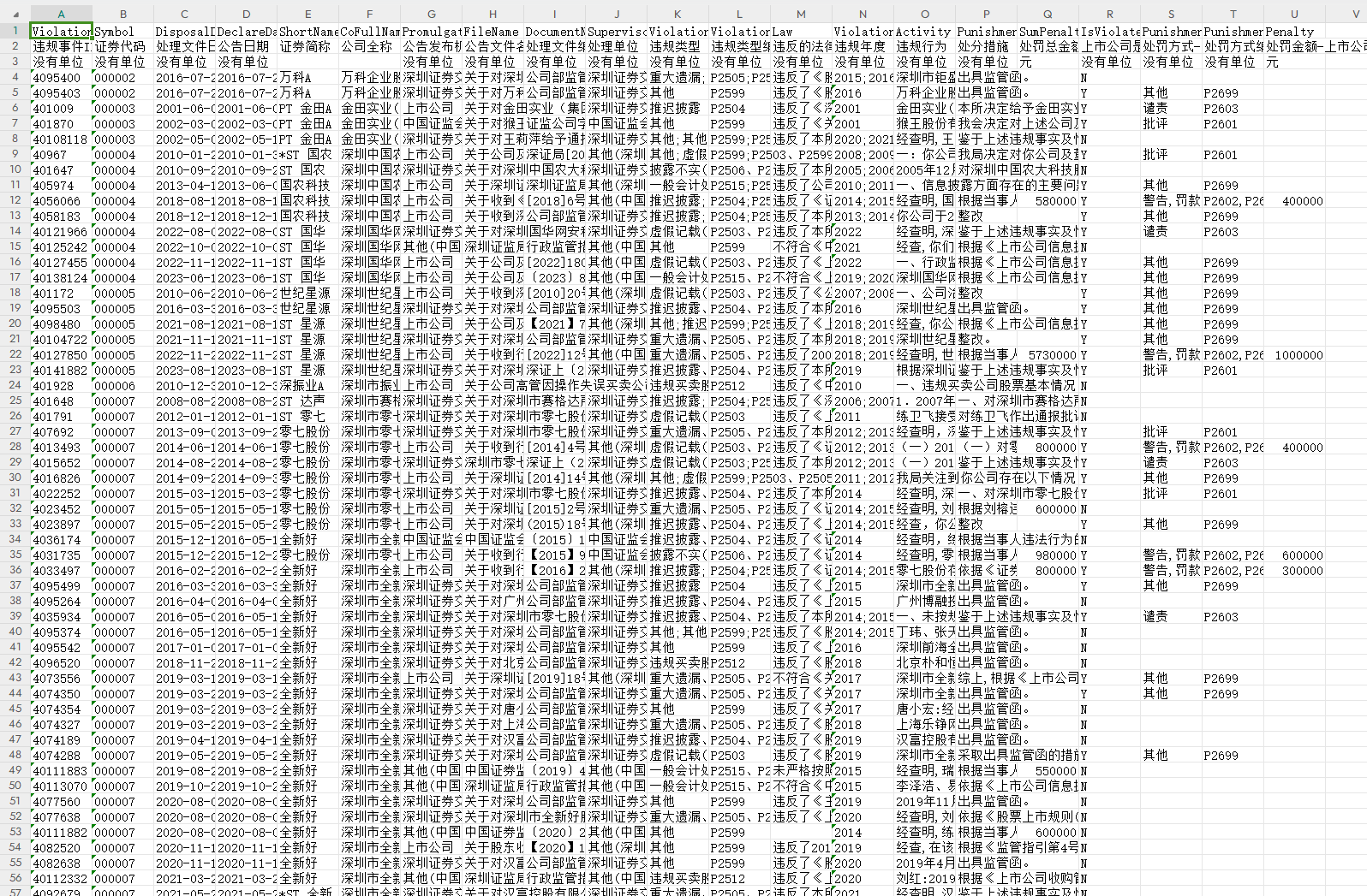 具体信息包括公告文件、证券名称、违规行为等等,包括会计师事务所及注册会计师处罚信息。