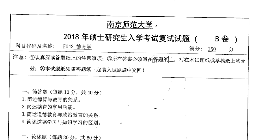2018德育学南师大南京师范大学考研复试真题(无答案)